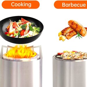 15″ 38cm Large Round Portable Stainless Steel Bonfire Campfire Stove Fire Pit Smokeless with Grill